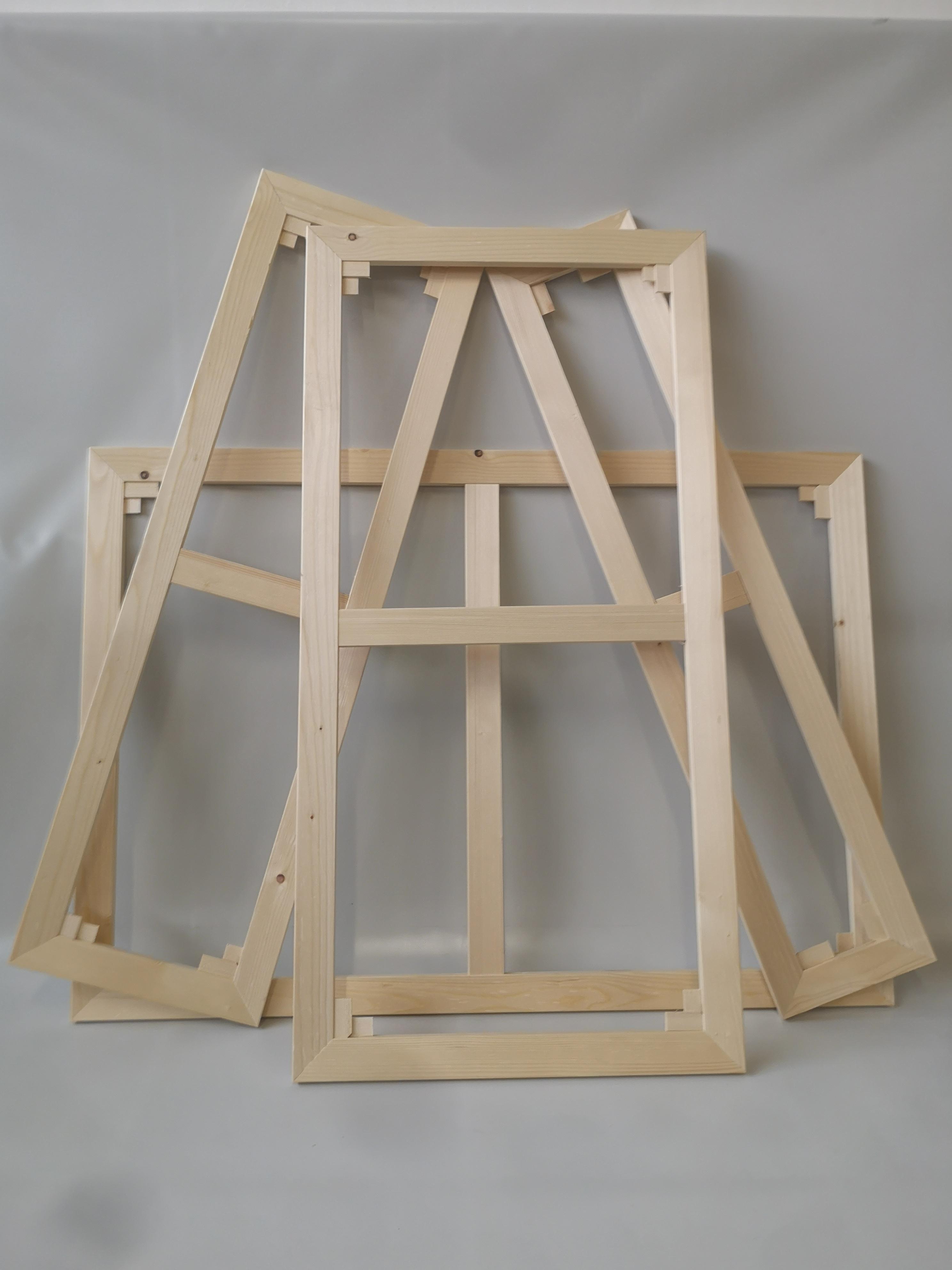 I telai senza tela sono in legno di abete naturale stagionato proveniente da silvicolture industriali europee sostenibili. Questi telai hanno il vantaggio di poter essere rivestiti in base proprie esigenze. Il formato dei telai senza tela hanno un profilo di 35 x 17mm e 45 x 17 mm. Lo spessore ne garantisce un’ottima stabilità. Il telaio senza tela montato con le loro chiavette in legno già inserite.